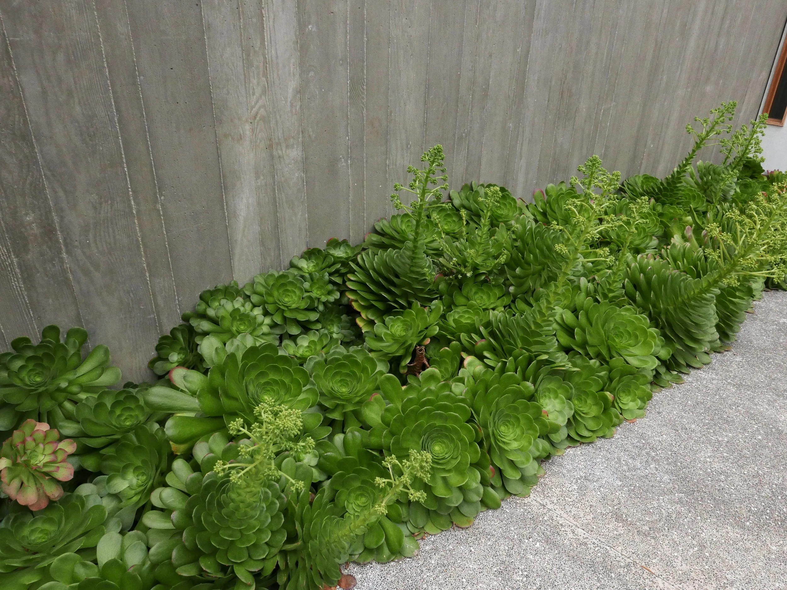 Materials and Plant Palette Highlights: Boardform concrete with a beautiful specimen Euphorbia ingens.